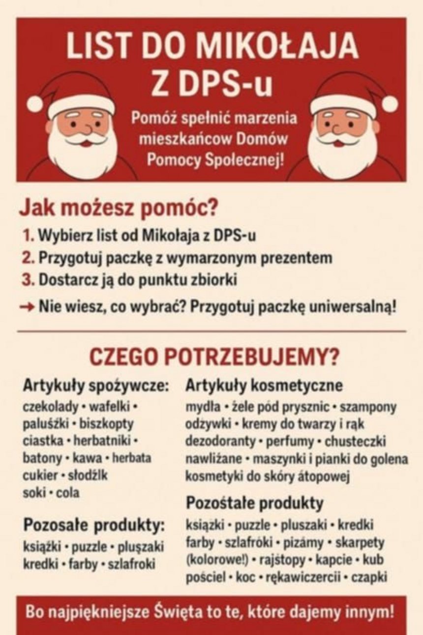 Serdecznie zapraszamy wszystkich do udziału w akcji "List do Mikołaja z DPS-u".