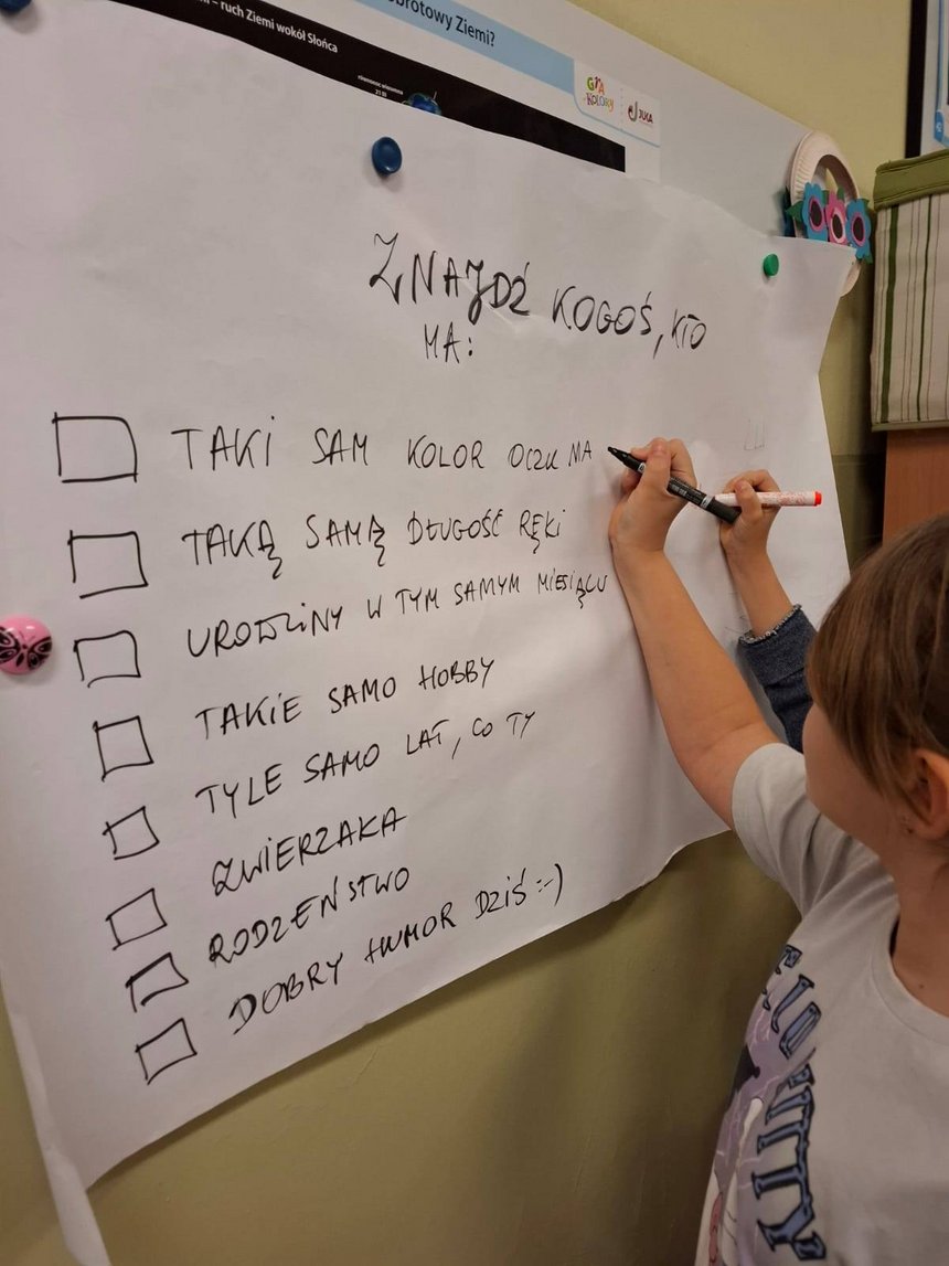 Przez cały październik w świetlicy szkolnej odbywały się zajęcia z cyklu "Dobry klimat to podstawa!" Uczniowie i uczennice uczyli się nazywać i rozpoznawać emocje, odnajdywali swoje mocne strony oraz poznawali siebie nawzajem.